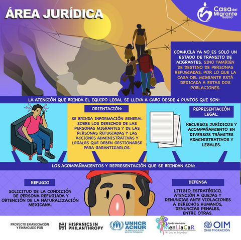 Nombrada en el organigrama como área de protección enfoca su trabajo en el acompañamiento y representación legal de personas solicitantes de la condición de refugio en México, personas ya reconocidas como refugiadas, sujetas de protección complementaria o en su trámite de naturalización ante el INM.